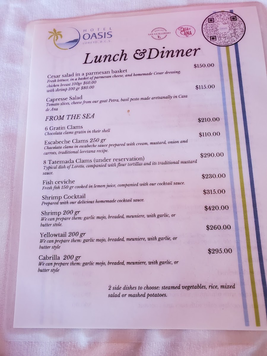 Guests often find the dishes well-matched to the warm, beachside atmosphere—light and fresh options like Almejas Gratinadas or Tatemada clams complement the coastal setting, while heartier plates such as the Christmas Eve Turkey Dinner or Loreto Style Fajitas offer comforting familiarity during evening meals. The house-made drinks, including margaritas and limonada mineral, add a refreshing touch that fits naturally with the outdoor patio ambiance.